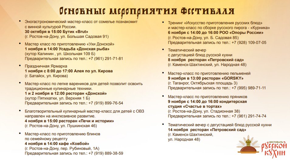 Администрация Зерноградского района информирует, что при поддержке департамента в период с 1 по 14 ноября в Ростовской области пройдет первый Всероссийский фестиваль «Русской кухни»!