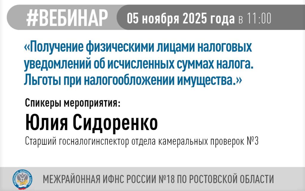 Приглашаем налогоплательщиков принять участие в вебинаре по теме «Получение физическими лицами налоговых уведомлений об исчисленных суммах налога. Льготы при налогообложении имущества»