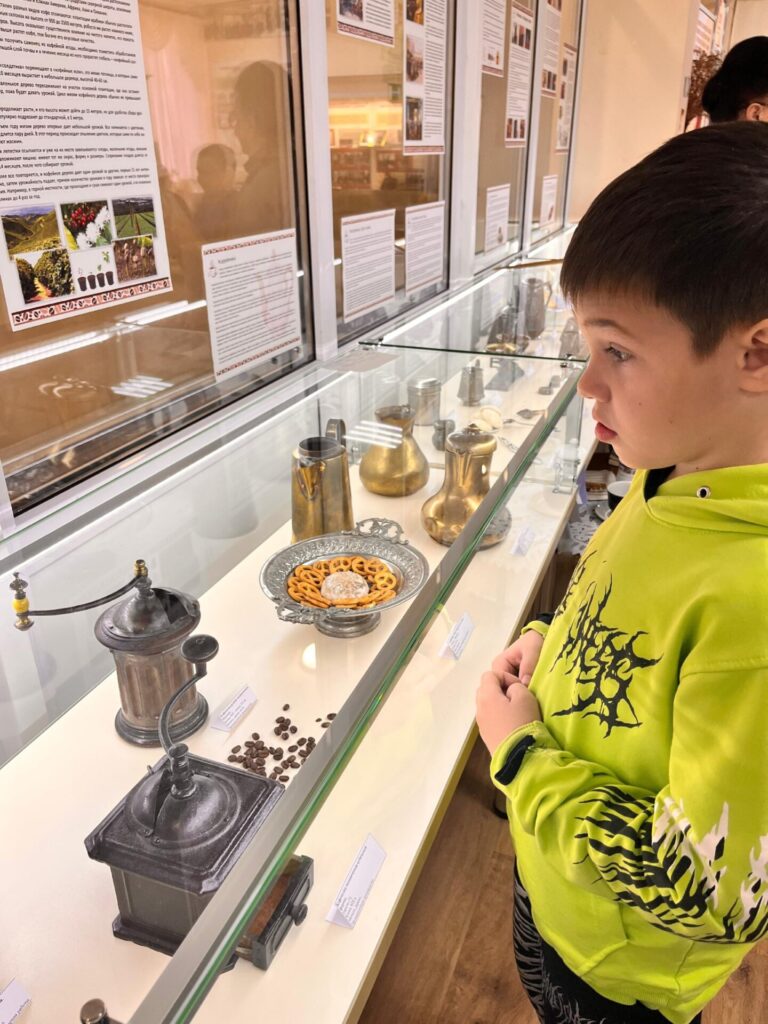 Дети узнали о происхождении кофе, его истории в России и влиянии на детский организм. Программа включала рассказы о разных сортах кофе и способах его приготовления.