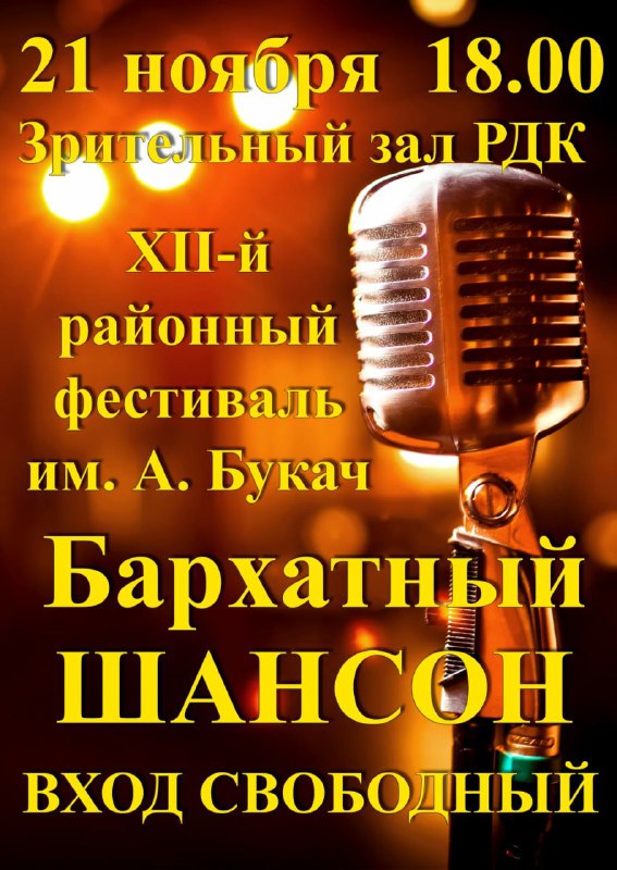 21 ноября состоится ежегодный двенадцатый районный фестиваль «Бархатный шансон», посвящённый любимому зерноградцами певцу и нашему земляку Александру Букачу.