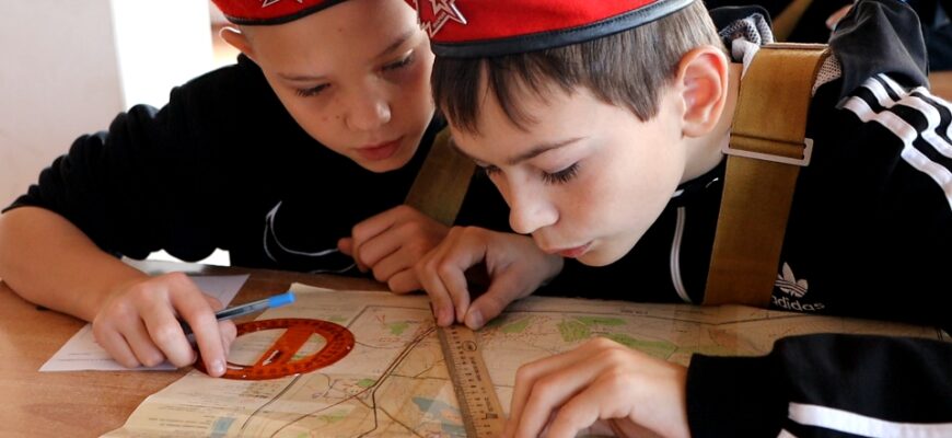 Топография и ориентирование. Работали с картой и компасом, прокладывали маршрут, определяли азимут и расстояние до контрольных точек.