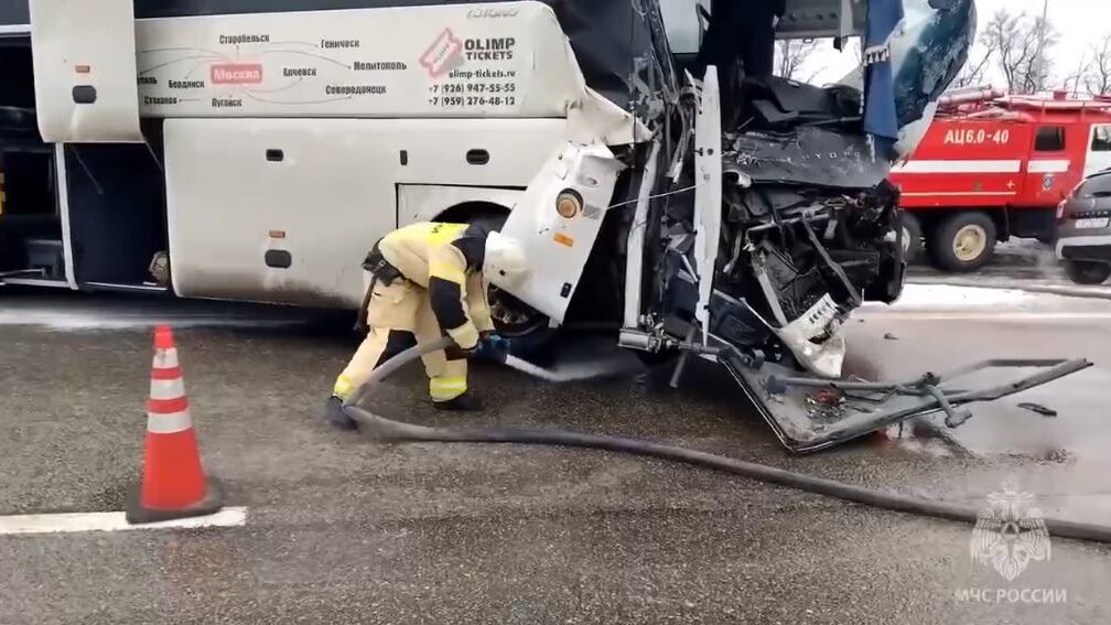 Сегодня около 8 утра на трассе М-4 «Дон», рядом с хутором Новоивановка, автобус, который ехал из Москвы в Стаханов (ЛНР), столкнулся с бензовозом. В автобусе было 17 человек.