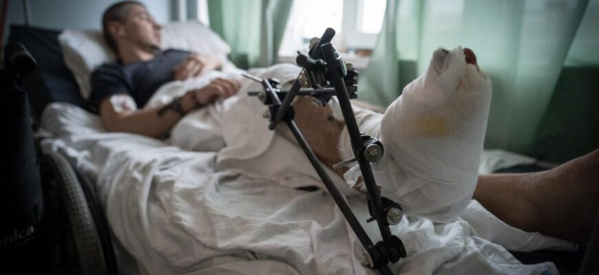 Этот этаж — в основном ребята с повреждениями ног, рук, живота. Володю в блиндаже с двумя товарищами достала «птичка». Ногу пытались спасти, но увы, пришлось убирать разрубленную в хлам конечность выше колена.