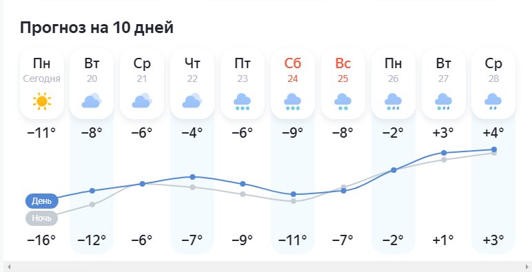 🌡 Сегодня днем: «потепление» до -11°.