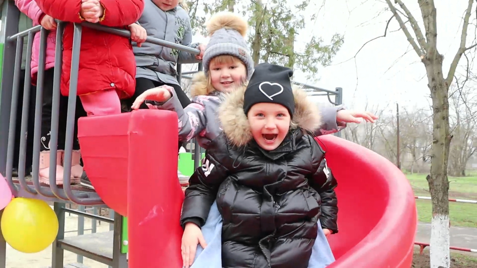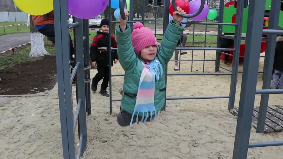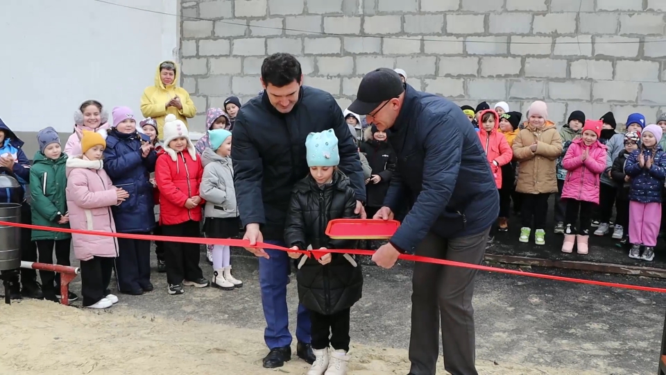 После поздравительных выступлений наступил торжественный момент перерезания ленты. Почётное право было предоставлено Дмитрию Репке и Сергею Бочаловому. Когда красная лента была перерезана, мальчишки и девчонки радостно устремились на спортивно-игровую площадку. Дети с большим удовольствием резвились, веселились, шутили, в общем, детский смех не смолкал! Их внимание было сосредоточено на игре, но мне все равно удалось с ними поговорить.