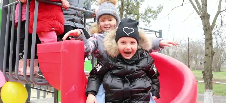 Учащиеся Манычской СОШ и воспитанники детского сада «Зернышко» собрались вместе для того, чтобы принять участие в открытии нового игрового комплекса.
