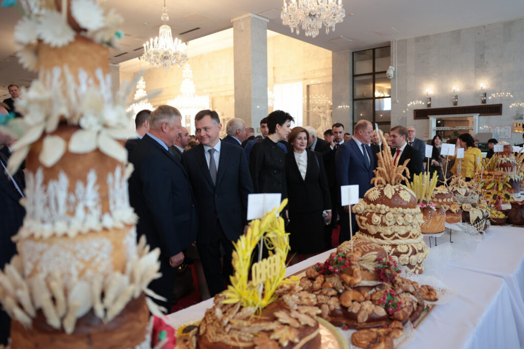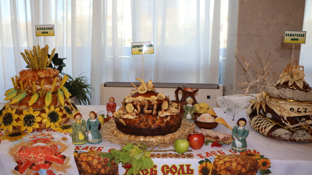 В фойе театра была организована традиционная выставка караваев — ароматные, румяные, украшенные подсолнухами и колосьями из теста — вкусные произведения искусства в музыкальный театр привезли из всех районов Ростовской области. Эта экспозиция — символический результат тяжелой полевой работы донских аграриев. На каждом каравае цифры — урожайность этого года в тысячах тонн. Здесь же и те, благодаря кому удалось испечь этот хлеб — руководители хозяйств, агрономы, комбайнеры, трактористы. Петру Михайловичу Писареву, трактористу-машинисту сельскохозяйственного производства участка растениеводства №3 опытной станции «Экспериментальная» — филиала ФГБНУ «Аграрный научный центр «Донской», на торжественном мероприятии Губернатор Ростовской области Юрий Борисович Слюсарь вручил Благодарственное письмо.