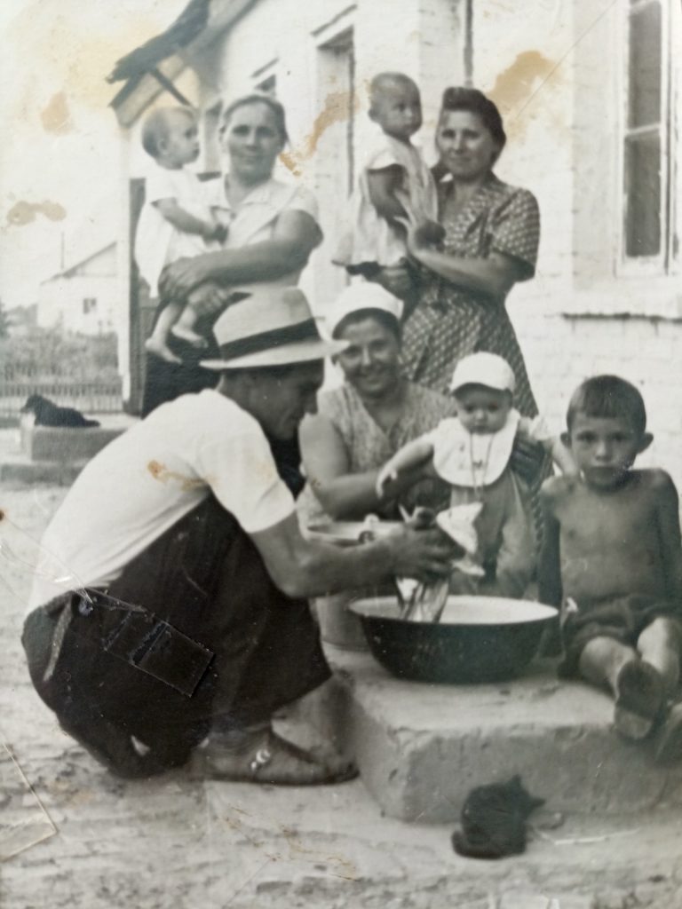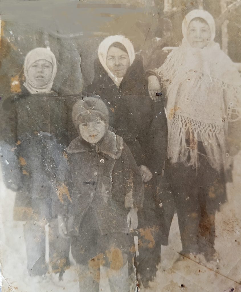 Село Кугоейка находилось в оккупированной фашистами зоне. Наша мама испытала тяготы военных лет. В свои 6 лет она узнала, что такое голод, холод, бомбежки. До сих пор она слышит грохот снарядов и скрежет железных гусениц. Она отчетливо помнит, как в 1943 году наши войска освобождали село. Рассказывая об этом внукам, тихо вытирает слезы: «Фашисты отступали, ничего не щадя по пути. Мы с сестрой и братом спрятались на печи, со страхом вслушиваясь как гремят взрывы. После очередного взрыва, взорвалась соседняя хата, стену нашего дома изрешетило осколками снарядов. Несколько снарядов пролетело над нашими головами. Мы чудом остались живы. По-детски, мы не понимали, почему мама, обнимая нас, вытирала слезы. Мы ведь живы!» В 1944 году, получив тяжелое ранение, отец вернулся в село, чтобы поднимать хозяйство после разрухи.