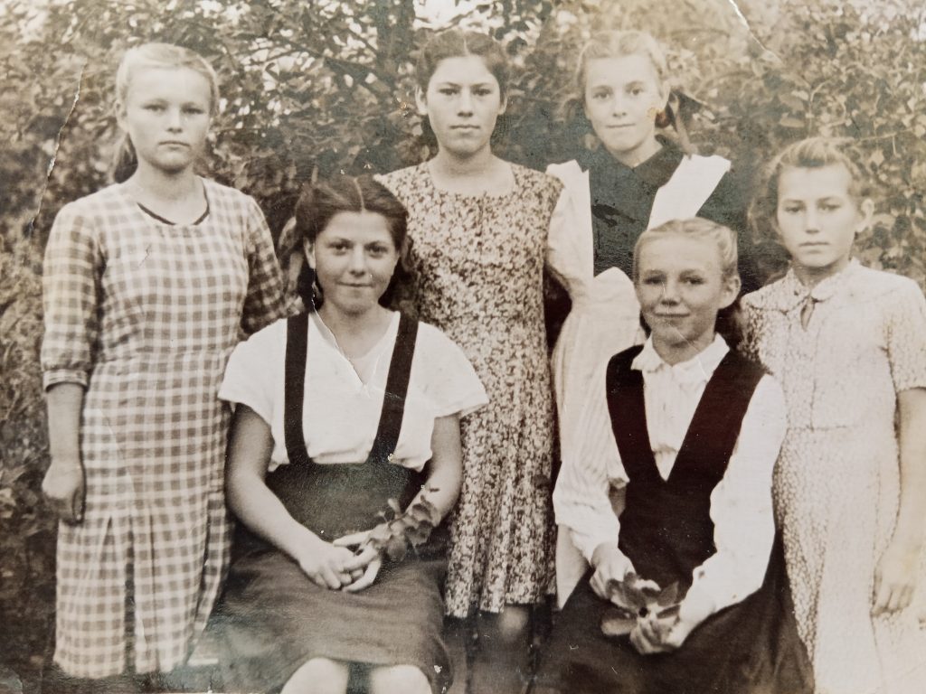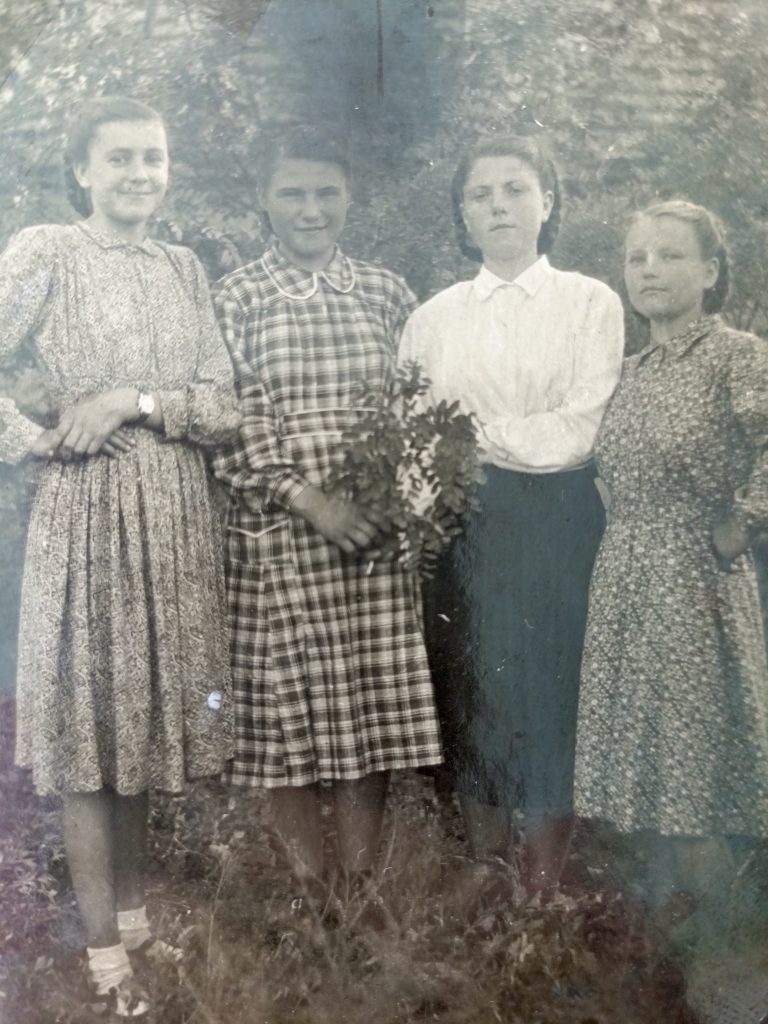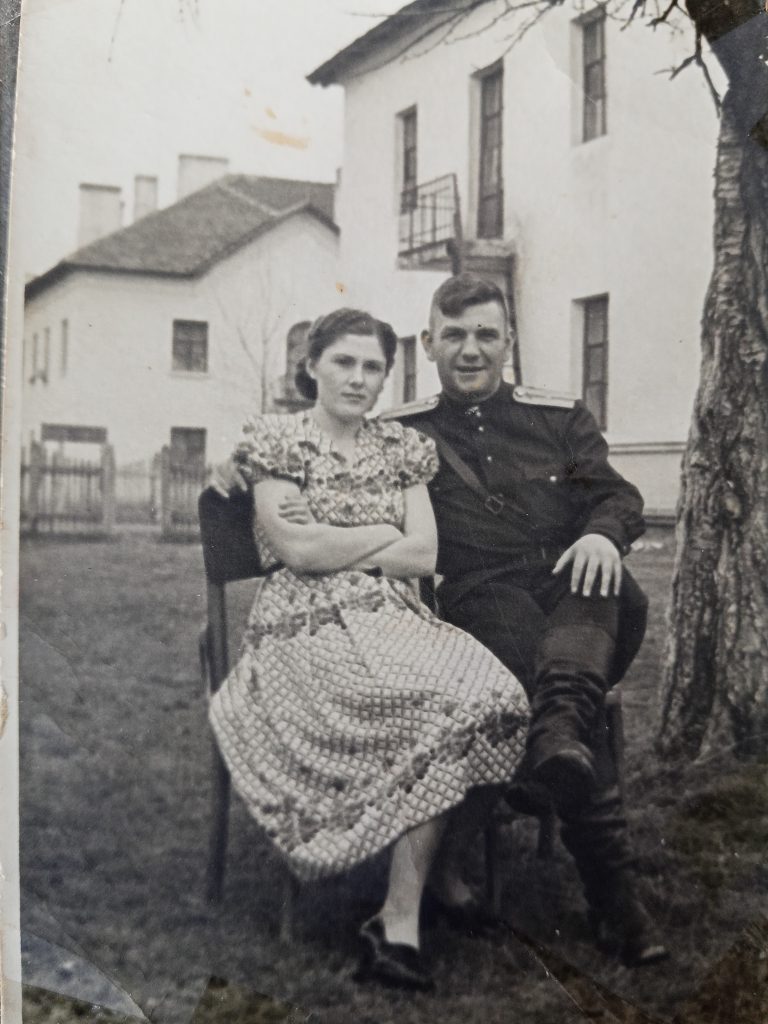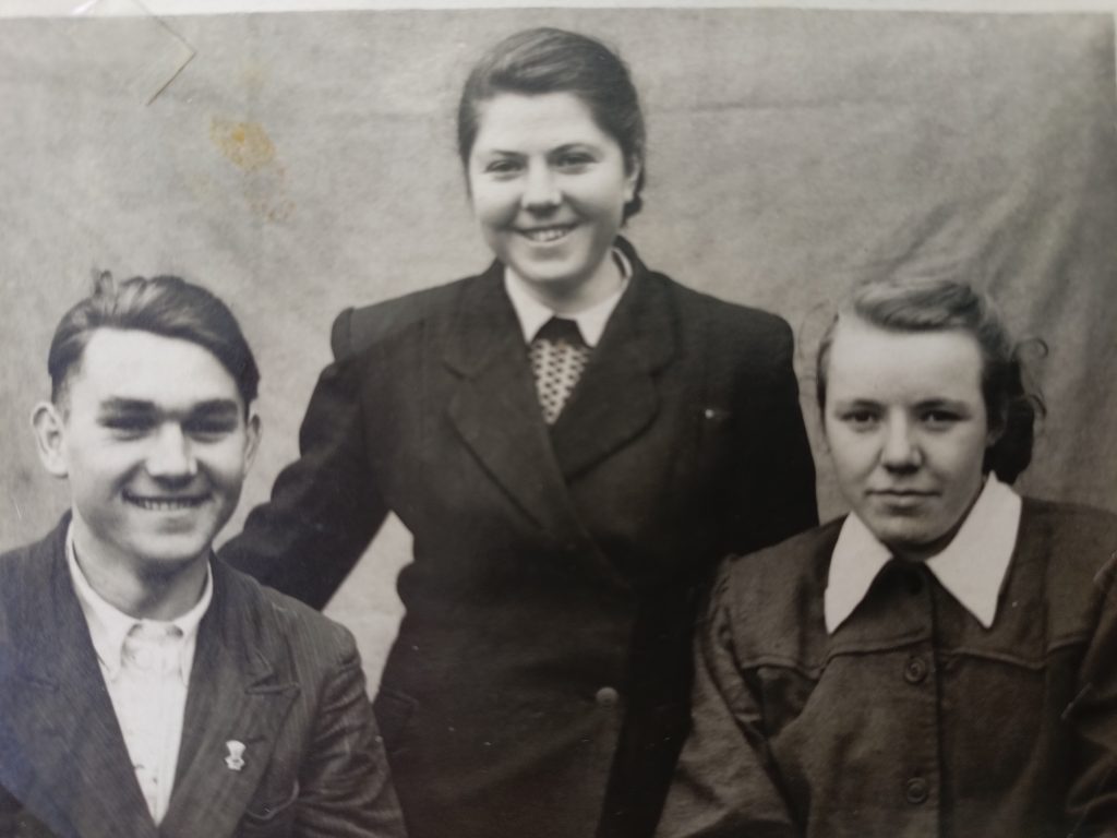 В 1953 году, с отличием закончив 10 классов, мама осталась работать в своей школе, сначала вожатым, а затем учителем немецкого языка. Работая в школе вместе с подругой Татьяной, они вместе снимали комнату. Начались прекрасные годы юности. У Татьяны сложились романтические отношения с юным инженером хутора Веселый. Приезжал он на свидания с водителем, высоким, рыжеволосым, кудрявым парнем. Евгений поразил скромную, воспитанную Людмилу своим обаянием, чувством юмора, добротой, кругозором. В нашей семье с теплой шуткой вспоминали их первое знакомство: «Сидим, молчим. Чего молчим? – Люся, давай поженимся! – Давай!» Вспыхнувшее чувство первой любви, наши родители пронесли через все совместно прожитые годы. После свадьбы молодая семья поселилась в хуторе Веселом, где мама стала работать воспитателем в детском саду. А вскоре родители переехали в станицу Мечетинскую. Папа, Евгений Федорович, работал механизатором в колхозе им. Кирова. Мама, любимая всеми Людмила Алексеевна, закончив заочное отделение педагогического училища, продолжила работать воспитателем в колхозном детском саду «Ромашка». Она, как целеустремленный, трудолюбивый, энергичный воспитатель, формировала в детях любовь к природе, родному краю, к труду на земле. Дети с большим интересом и желанием трудились на грядках детского сада, гордились своим урожаем. Выпускники до сих пор помнят экскурсии и походы в поля и на животноводческие фермы колхоза.