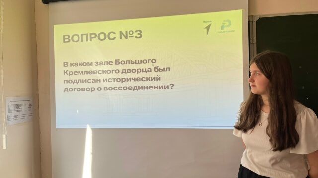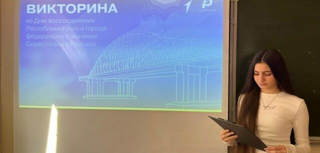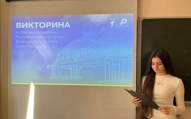 В преддверии Дня воссоединения Крыма с Россией в МБОУ лицей города Зернограда состоялась познавательная викторина. Она была организована советником директора по воспитанию Натальей Витальевной в рамках всероссийской акции «Одна страна — одна история».