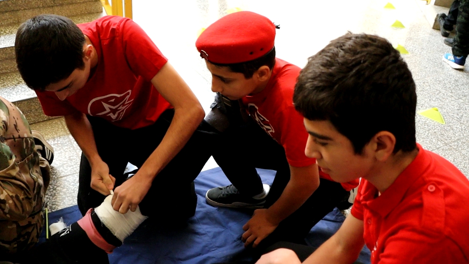 Оказание первой помощи. Команды отрабатывали алгоритмы оказания доврачебной помощи и эвакуации «раненого» в безопасную зону.