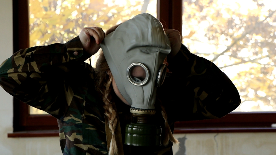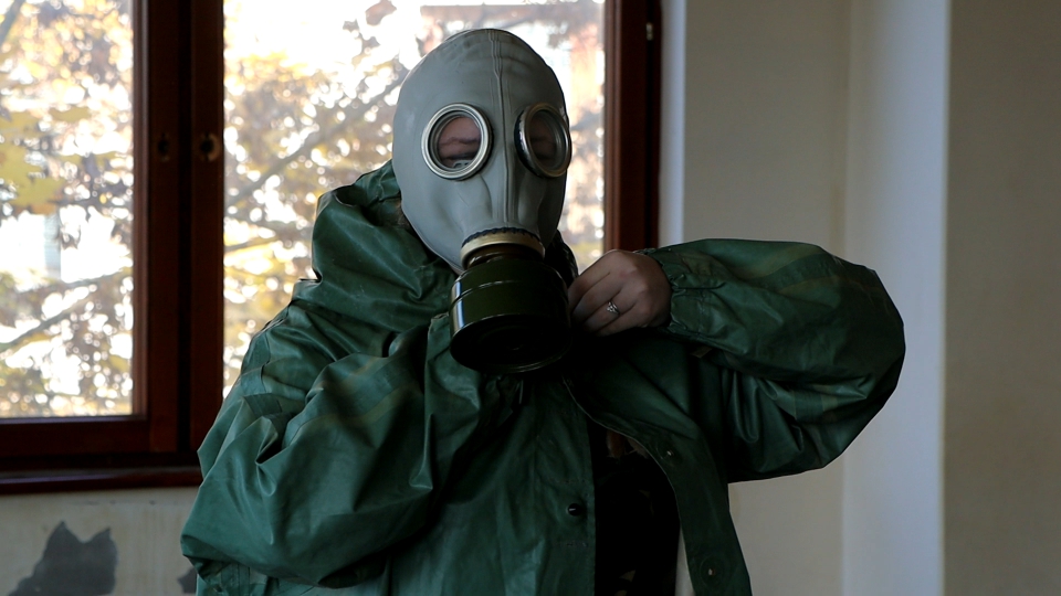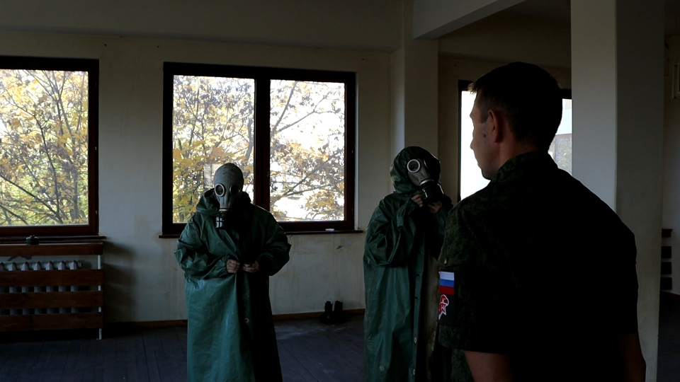 В Химической защите участники надевали противогазы и общевойсковой защитный комплект.