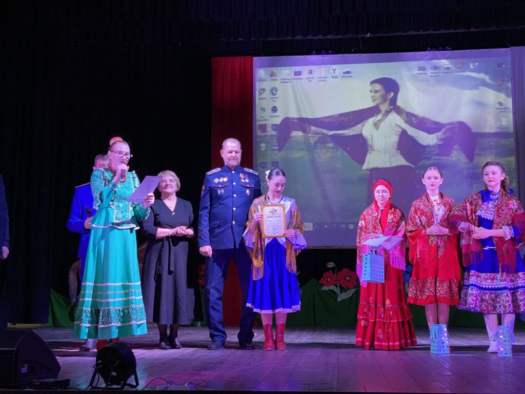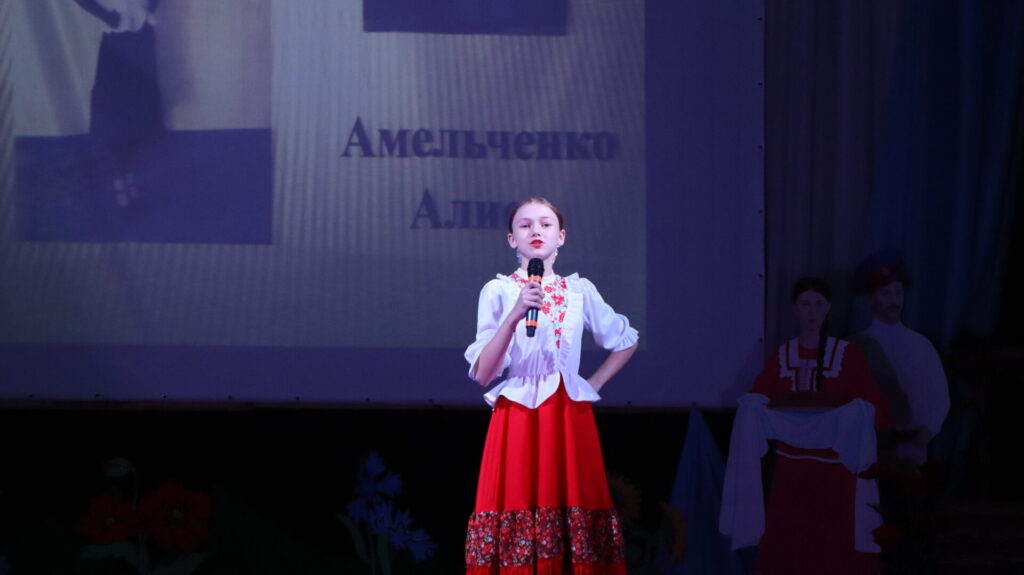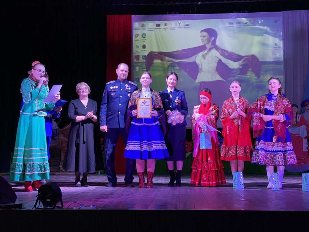 Ведущими этого мероприятия стали педагоги ДДТ «Ермак» Анна Максименко и Юрий Кольчик. Участие в конкурсе приняли казачки из пяти школ района: Ульяна Силкина из Гуляй-Борисовской СОШ, Ангелина Павлючик из Мечетинской СОШ, Алиса Амельченко из Клюевской СОШ, Виктория Новикова из Манычской СОШ, Дарья Мокроусова из ООШ г.Зернограда.