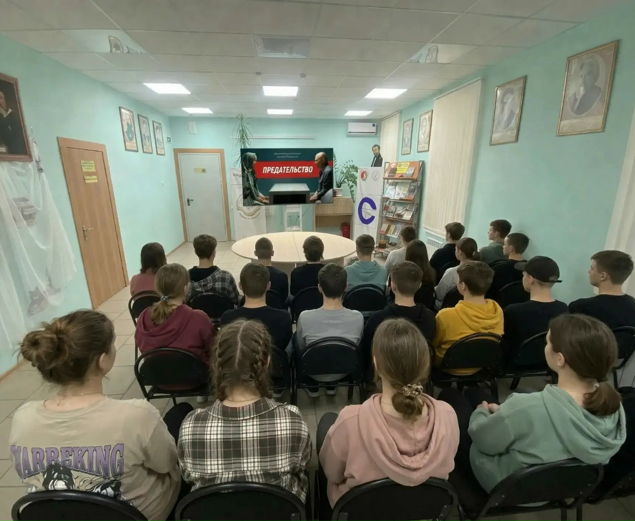 24 марта 2025 года в молодёжном центре Сфера, в библиотеке имени Пушкина в Зернограде показали фильм «Предательство». Фильм расскажет о гражданах страны, осужденных за террористическую и экстремистскую деятельность, о тех, кто предал родных, близких… После фильма ребята обсудили увиденное. Ребята пришли к выводу, что участие в терроризме ведёт к серьёзным последствиям: наказание, испорченная жизнь и клеймо предателя.
