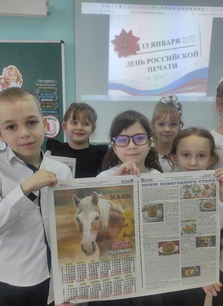Дети узнали, что в нашем городе есть редакция газеты Донской маяк. Это уникальное издание рассказывает о жизни жителей Зерноградского района, в том числе и о наших школьниках, и о них самих. А это очень приятно, когда о тебе пишут в газете. Это остаётся памятью на всю жизнь и ценной семейной реликвией. Ребята с большим интересом рассматривали красочный новогодний выпуск нашей районки.