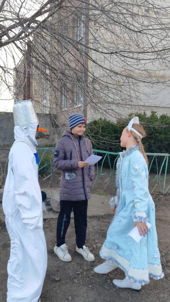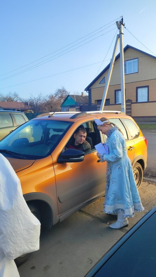 Его устроили «Зажигалочки» — волонтеры Гуляй-Борисовского Дома культуры, которые знают секрет, как растопить лёд повседневности. Нютина Милана и Кучеренко София, перевоплотившись в сказочных новогодних героев, вышли на улицы, неся с собой не просто красивые бланки, а целые порции надежды.
