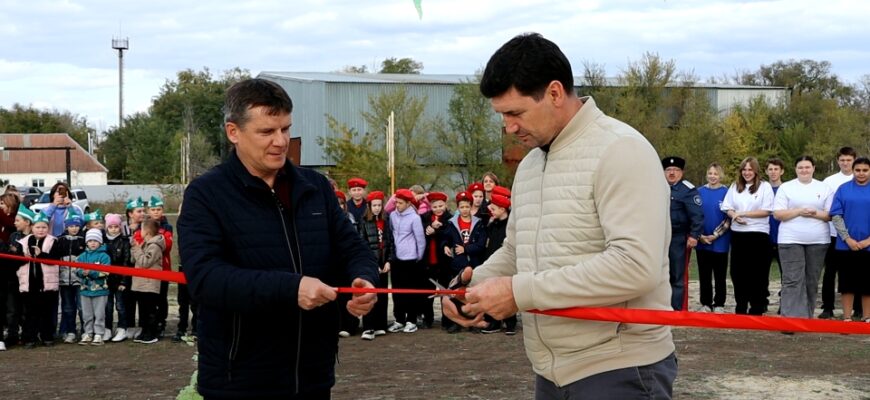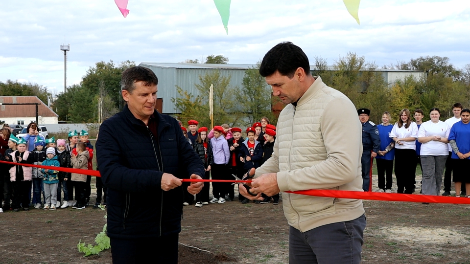 Наталья Николаевна Кузнецова, директор Мечётинского сельского дома культуры, попросила Дмитрия Анатольевича и Игоря Анатольевича перерезать символическую ленту и открыть дорогу в мир спорта для молодого поколения.