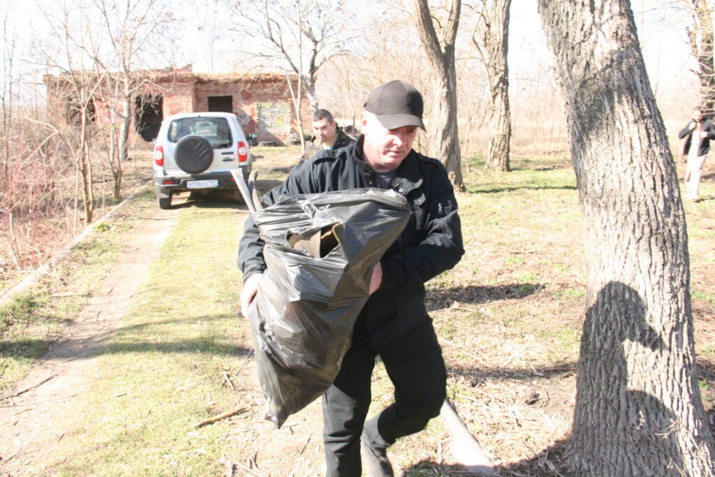 Местом действия стала лесополоса в переулке Кольцовский. С самого утра здесь кипела работа. Участники программы «Служение» — сотрудники региональных и федеральных органов исполнительной власти — вместе с председателем Собрания депутатов Зерноградского района, членом Зерноградского местного политического совета партии Единая Россия Богданом Богдановым, представителями администрации Зерноградского района и администрации Зерноградского городского поселения во главе с исполняющим обязанности главы городского поселения, членом партии Единая Россия Константином Беспамятным, специалистами МКУ «Управление ГО и ЧС Зерноградского района» и молодыми парламентариями Зерноградского района взялись за уборку территории.