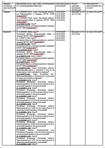 информирует о запланированных наземных/авиационных обработках полей пестицидами и агрохимикатами.