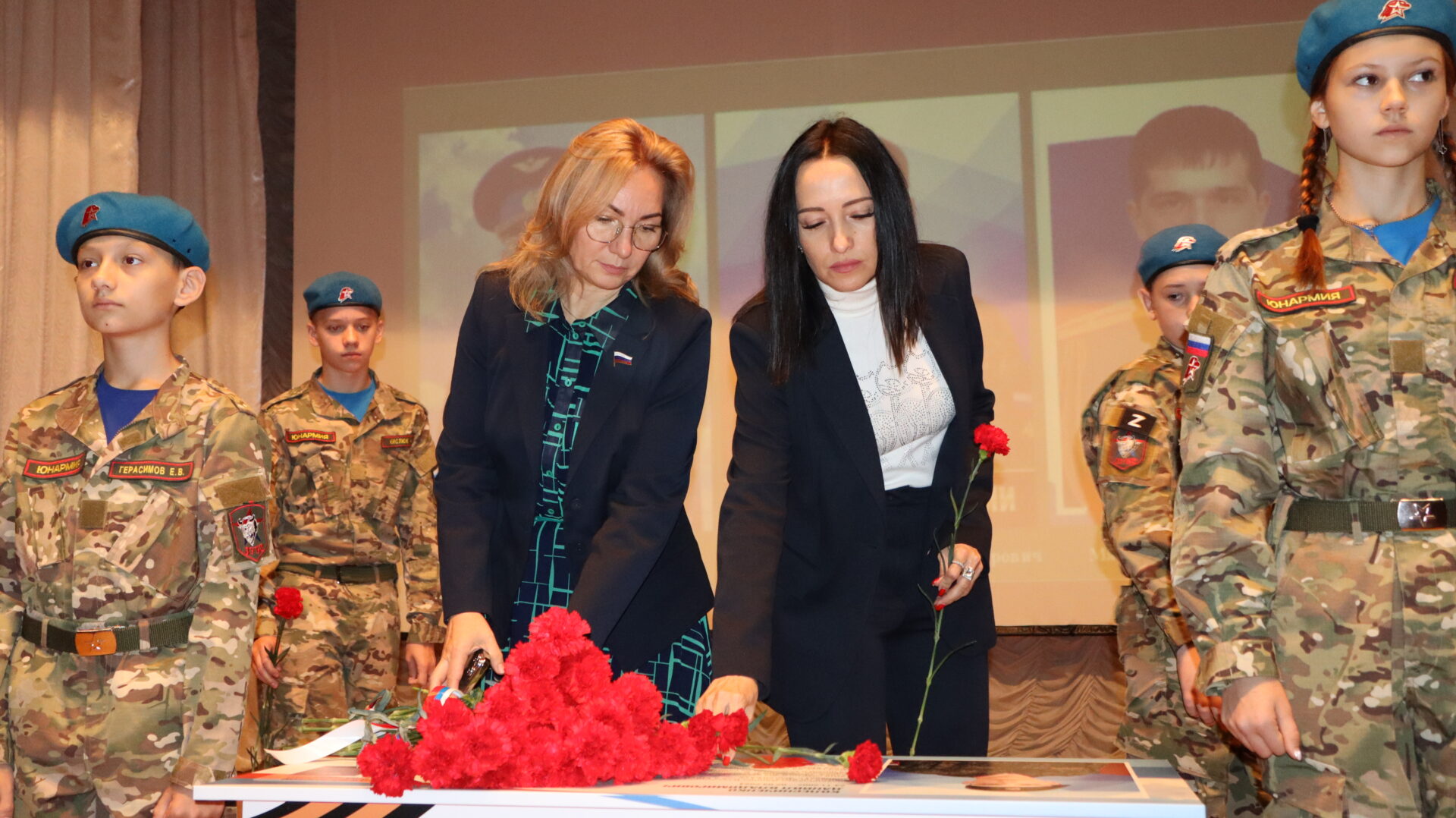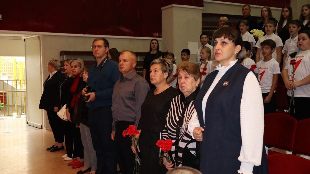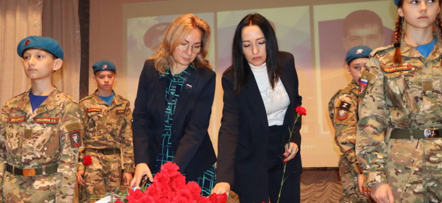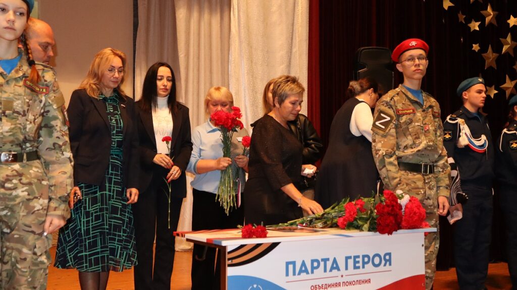 …В зале присутствовали почетные гости, близкие Героев. Память погибших почтили минутой молчания, к партам Героев возложили цветы…