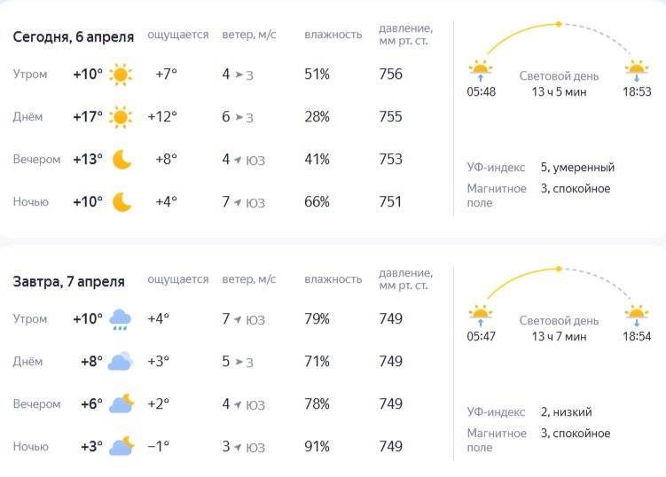 Во вторник погода немного испортится из-за дождя. Поэтому заранее готовим зонты, плащи и куртки.