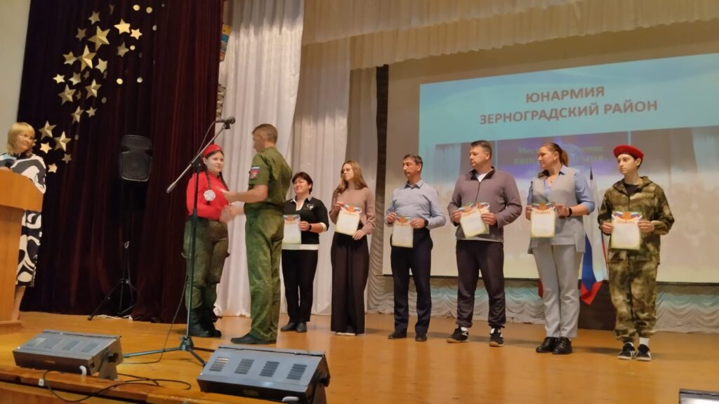 Это уже традиционная осенняя присяга юнармейцев, которую проводит Зерноградское местное отделение ВВПОД «Юнармия» совместно с МБУ ДО ДДТ «Ермак» при поддержке войсковой части 12628. В этот раз 104 обучающихсяпополнили ряды Зерноградского отделения Всероссийского движения. На этой церемонии удостоверение получил тысячный юнармеец, а всего в Зерноградском районе с момента открытия местного отделения Юнармии удостоверения юнармейца получили 1055 человек.Ребятам зачитали заповеди юнармейца, после чего они дали торжественную клятву и получили удостоверение. В мероприятии приняли участие члены общественной организации «Союз ветеранов Афганистана» А.В.Белоцерковский и С.В.Гаркавенко, представитель Союза казачьих формирований области Войска Донского О.В.Моргунов. По окончании торжественного мероприятия было сделано традиционное общее фото для истории.
