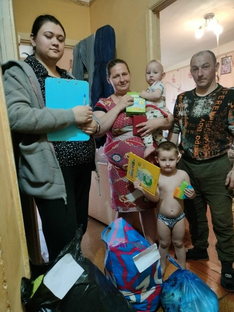 Доставку организовали на транспорте СРЦ. Вместе с гуманитарной помощью сотрудник центра Ольга Квасова провела с семьями доверительные беседы, а советник молодежного парламента при Собрании депутатов Зерноградского района Нина Иралиева в это время занимала детей – играли, читали, рисовали. Каждая семья получила именно то, что было нужно: одежду по размеру, книги по возрасту, игрушки для малышей и школьные принадлежности.