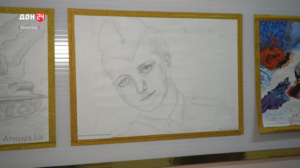 Екатерина Костюкова, подопечная Зерноградского психоневрологического интерната: «Здесь я начала больше рисовать. Вот, например, рисунки на военную тематику. А эта картина – четыре танкиста отдыхают после работы и стрельбы».