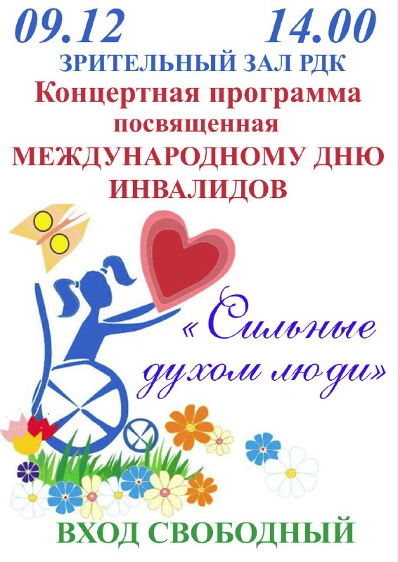 9 декабря в Зерноградском РДК состоится торжественная программа «Сильные духом люди», посвященная Международному дню инвалидов.